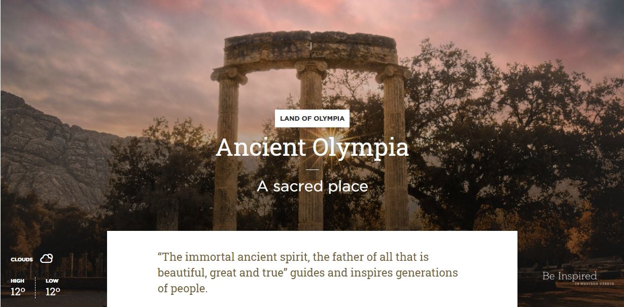 In the valley of the Alfios, at the foot of Kronios hill, the Ancient land of Olympia, the most glorious sanctum of the ancient world, stands as an international symbol of humanity. It was here that the Olympic Games were born in honour of Zeus and were accompanied by the sacred truce that signaled a pause in hostilities between cities.